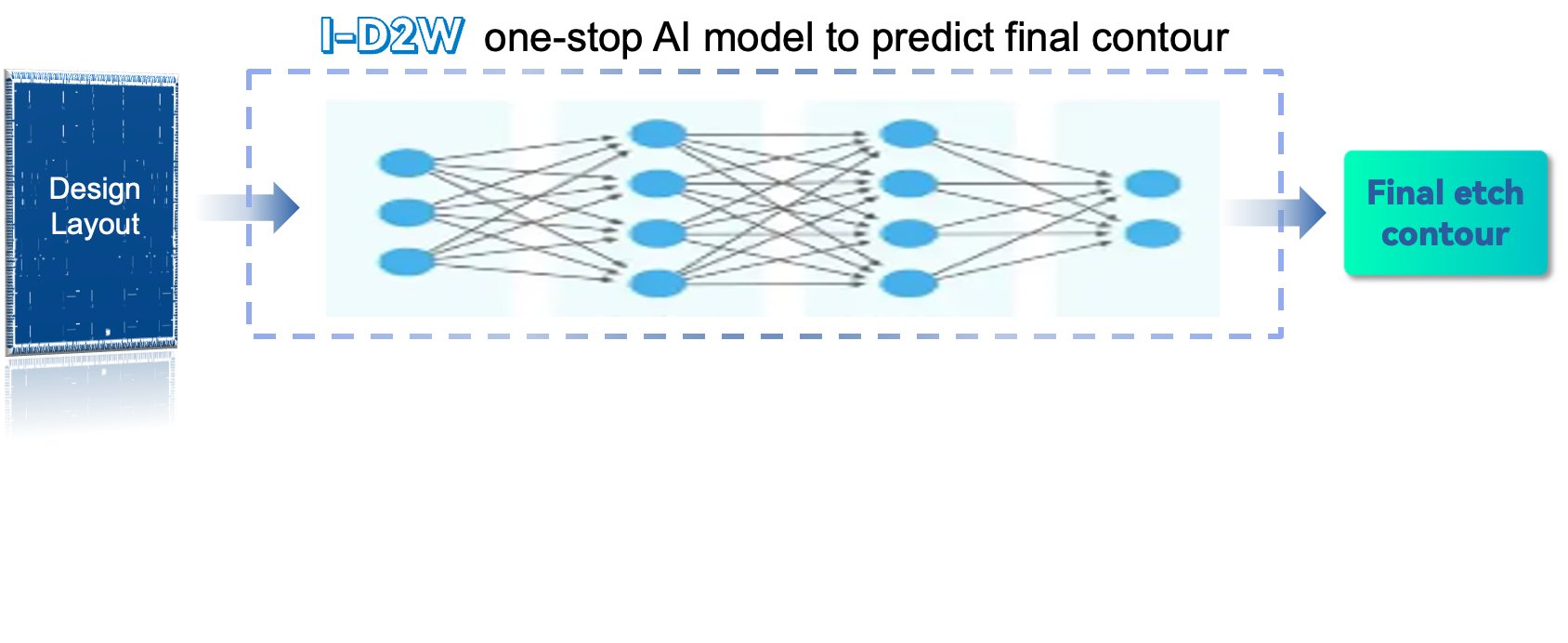 I-D2W (Intelligent Design to Wafer) 是DFM产品,采用了最新的AI模型和技术,可以基于全芯片设计版图一站式预测最终的晶片轮廓,为芯片设计提供热点信息和反馈。